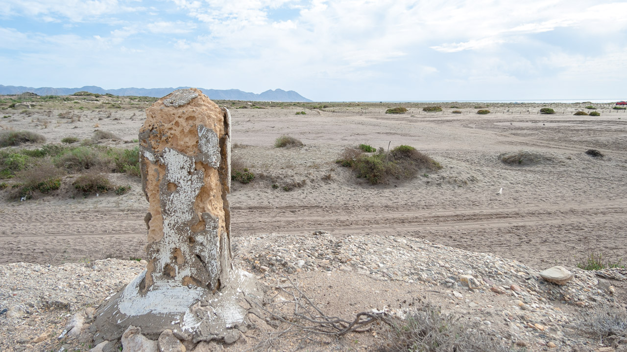 Entorno: Se encuentra en una zona diáfana, junto al mar y la ermita de Torre García y los restos de una factoría de salazón de pescado romana.