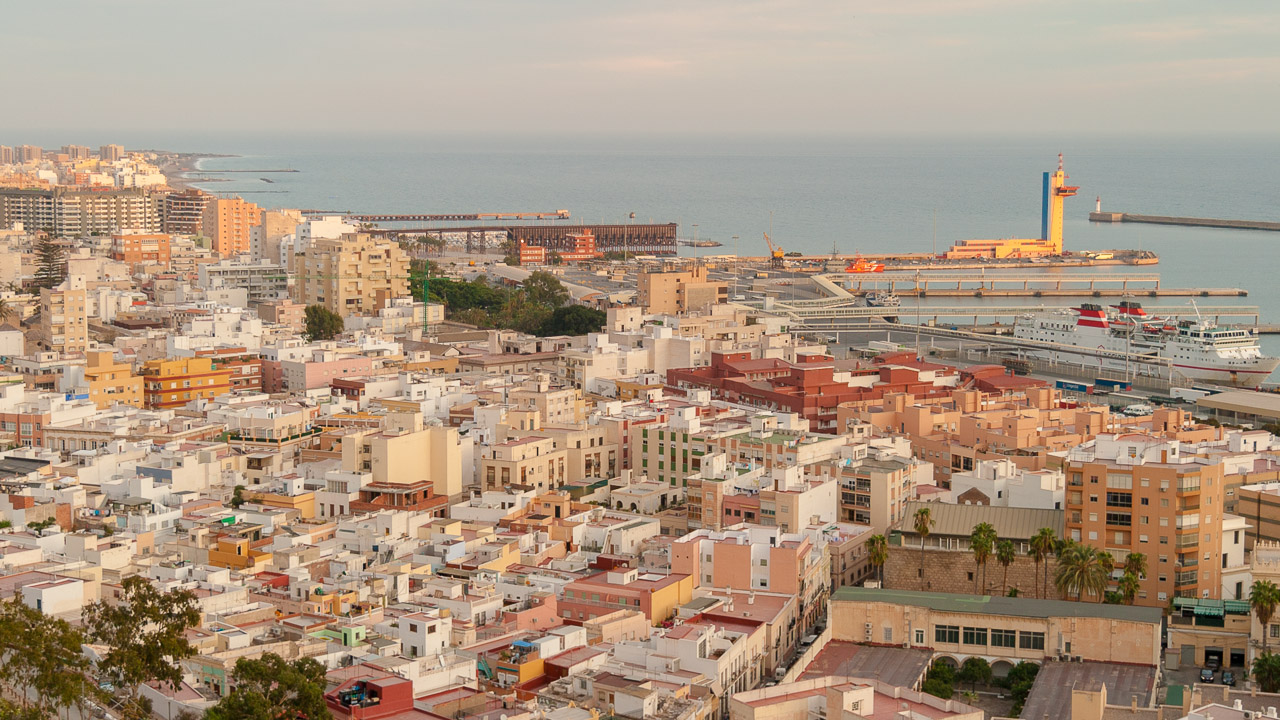 Se encuentra junto al parque de las Almadrabillas, el puerto de Almería y el puerto deportivo.