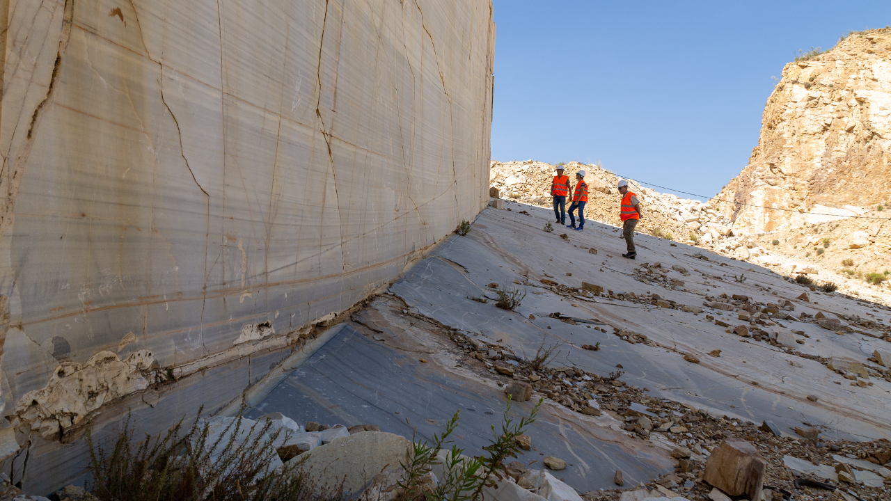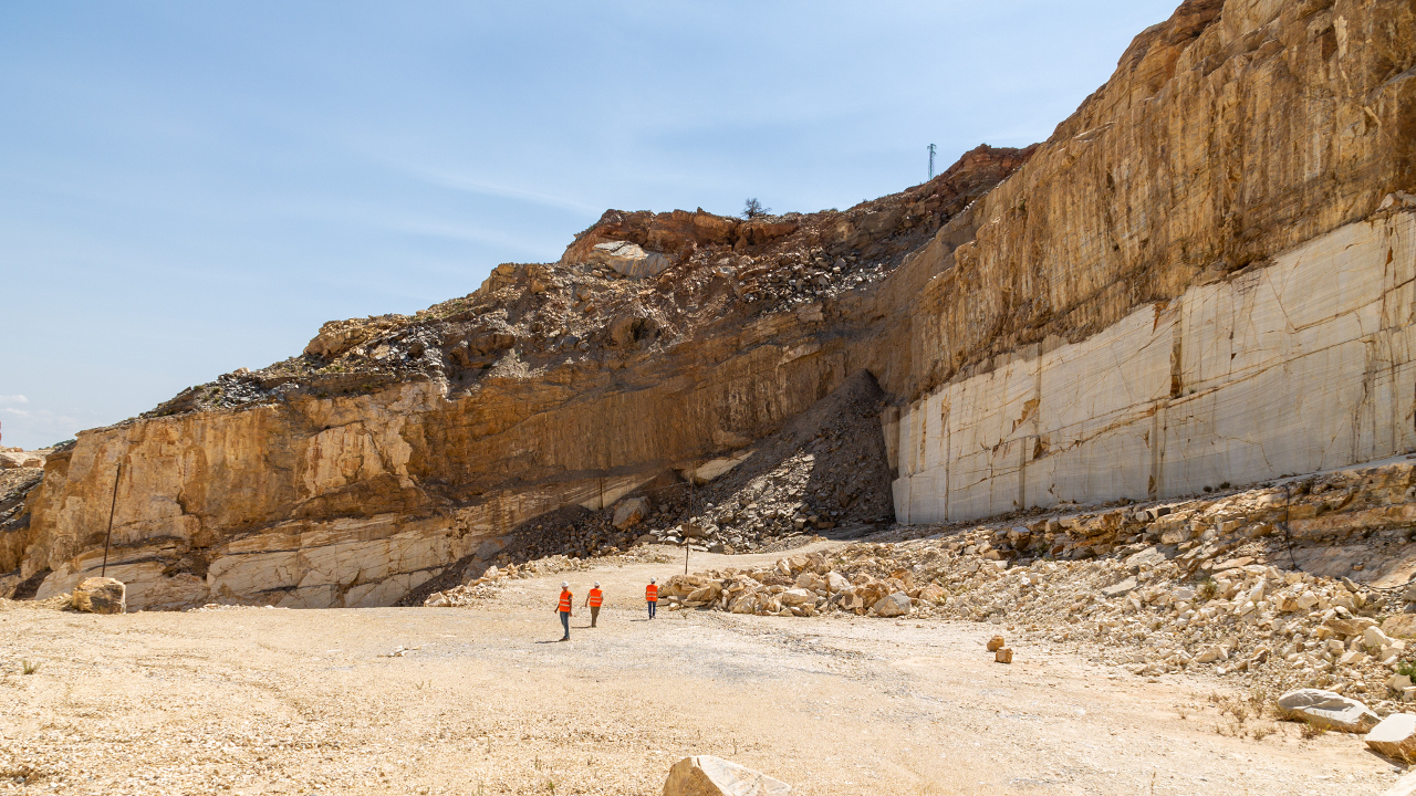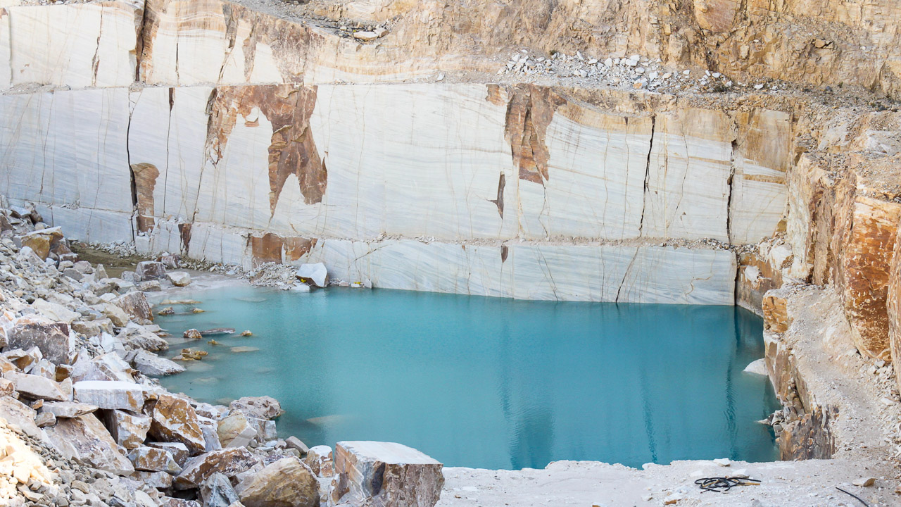 El mármol blanco queda a la vista de esta cantera de gran dimensión.