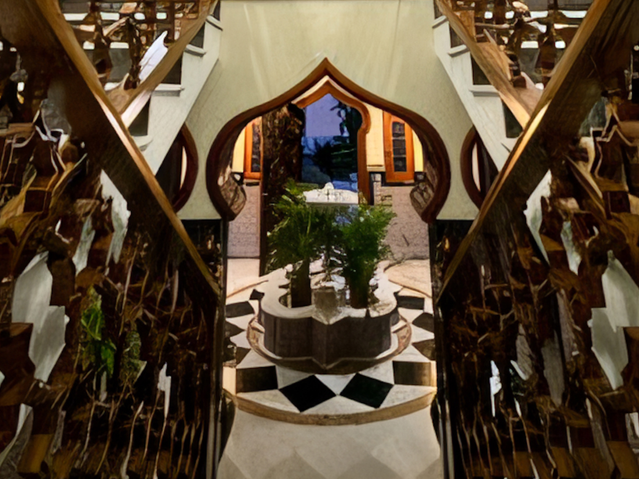 La Villa Árabe es un oasis de lujo inspirado en las Mil y Una Noches, situada junto al Paraje Natural de Punta Entinas-Sabinar y a tan solo 10 minutos de la playa. Su imponente cúpula azul es el centro visual de la villa, evocando la grandeza y la magia de los antiguos palacios árabes. Los interiores son igualmente impactantes, decorados con frescos originales del renombrado artista Waldi Wrobel, celosías iluminadas, y fuentes árabes interiores que añaden serenidad y elegancia a los espacios. Los suelos de mármol, arcos de madera tallada, azulejos andalusí y nazari, y carpintería de pino tea crean una atmósfera de lujo y exotismo. El dormitorio principal, con una cama de dosel y baño en suite, se abre a una gran terraza con vistas al jardín.